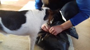 Elismerem, így utólag kicsit fura látvány lehetett, mikor az elhatározást tett követte, és egy fekete kukás zsákban, kivittük a tetemet a teraszra. Gazdi nekiállt mélyíteni egy gödröt, majd gondosan beástuk, és vastagon betakartuk hóval. Mindezt sötétben, csak a kerti világítás mellett. A kis PRT pedig ismét őrségbe helyezkedett, ezúttal a teraszon, és láthatóan feltett szándéka, hogy kint tölti az éjszakát, nehogy valaki elvigye az ő malacát.