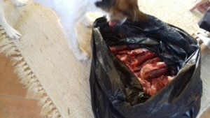 A legrosszabb rémálmom vette kezdetét. Úgy mint pár éve, mikor szintén egy zsáknyi szarvas landolt a lakásban, mert a Vadászéknál akkor éppen abból volt felesleg. Annak idején mázlim volt, és ki tudtam szervezni a munkát, ami azt jelentette, hogy egy igencsak nagy húsfogyasztó ismerős családhoz szállítottam át a zsákot, akik hatalmas lelkesedéssel álltak neki a feldolgozásnak, elkészítésnek, és több napon át érkezett a különféle szarvasból készült főétel Gazdihoz, és persze külön Spyke-hoz is. 😀 Ideális volt. Ők örültek a húsnak, nekem hozzá sem kellett nyúlni és mégis minden nap más kaja volt az asztalon.