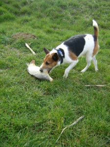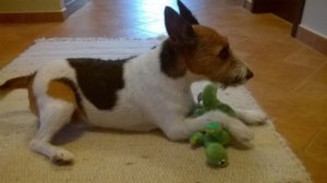 Nyúl. A hátsó lábait nyusziugrónak hívjuk. Amikor fáradt, a kocsiban is úgy fekszik, mint egy nagy mezei nyúl. 😀