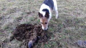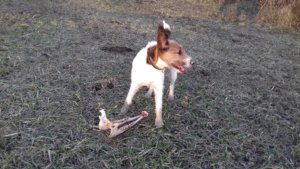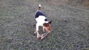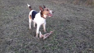Egyszer csak kiáltást hallottam a 16-ostól. Gazdi hívott, hogy menjek gyorsan. Átvágtam az erdősávon, és elhűlve láttam, hogy Spy mit talált. Egy patás lábszárat, még az előző vadászatból. Miután kitúrta a trágyakupacból, – nem tudom milyen szerencsecsomag tette pont oda-, elkocogott vele, és gondosan elrejtette.