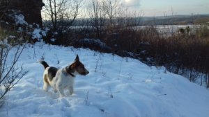 Elindultunk Spy-al, hogy felderítsük a téli rétet. A legnagyobb körre vittem, ami úgy másfél, két órás lehet. Terrierfüggő.