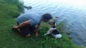 Gazdi és Pótvadász röhögve felvilágosították, hogy csak babázom. 😀 Gazdi még azt is elárulta Vadásznak, hogy ezt Spy-al is mindig megpróbálom eljátszani a vízben, de a mi kutyánk rpooant okos, és nagy ívben kerül ki. 😀